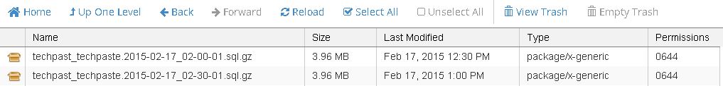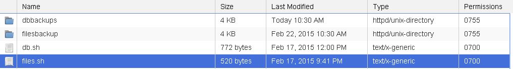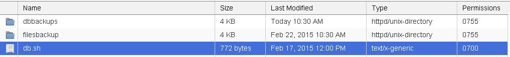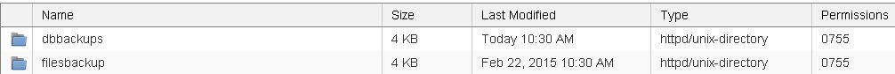 10. Once all above settings are correctly set, you will be able to see the db and files backups in both dbbackups and filesbackup folders respectively after the scheduled cronjob run like below.