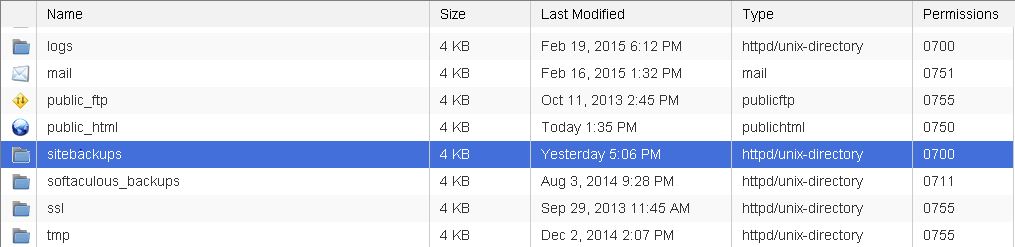 2. Go to file system browser and create a folder sitebackups parallel to public_html folder to store all the backups.