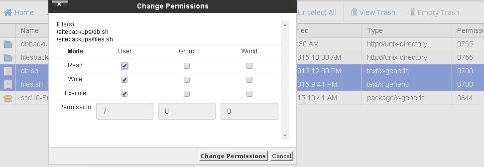 8. Once above two script to backup wordpress are setup, provide execute privileges to owner to let it run in scheduled time and date.