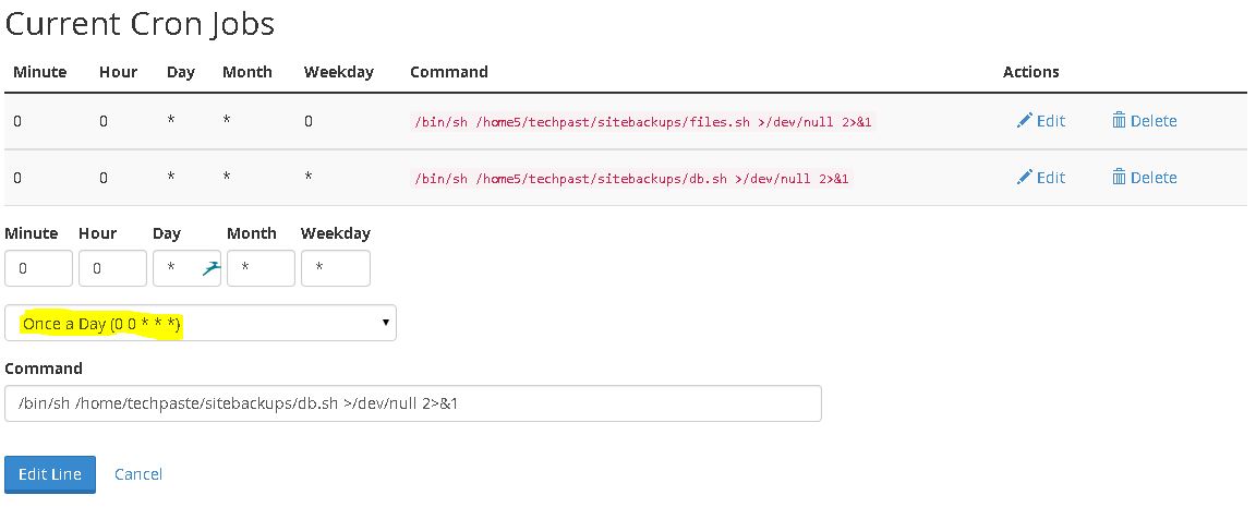 9.c. Similarly for database backups I have requirement of daily backups so I have used below cron settings, you can adjust it according to your settings for the script to backup wordpress. Make sure your command and path to file is correct else cronjob will fail.